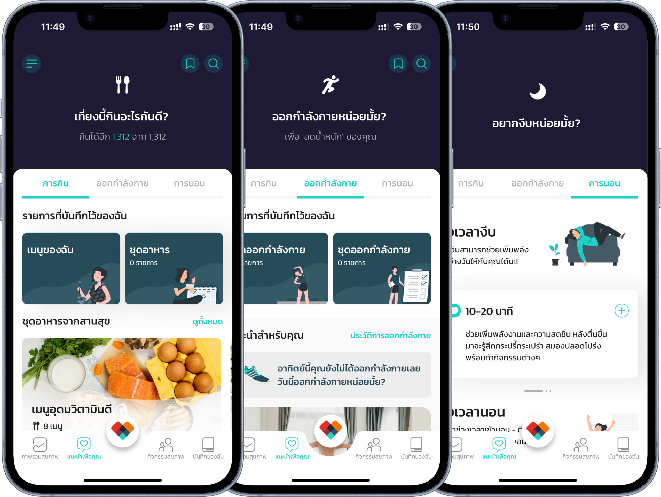 ไม่ว่าจะเป็นสรุปภาพรวมสุขภาพ แนะนำสิ่งที่เหมาะกับคุณในแต่ละวัน บันทึกสิ่งที่คุณทำ กิจกรรมที่ช่วยให้ดูแลตัวเองสนุกขึ้น หรือเก็บภาพบันทึกความประทับใจทุกเมนูออกแบบมาให้คุณเข้าใจและใส่ใจสุขภาพตัวเองได้ง่ายขึ้นในทุกวัน