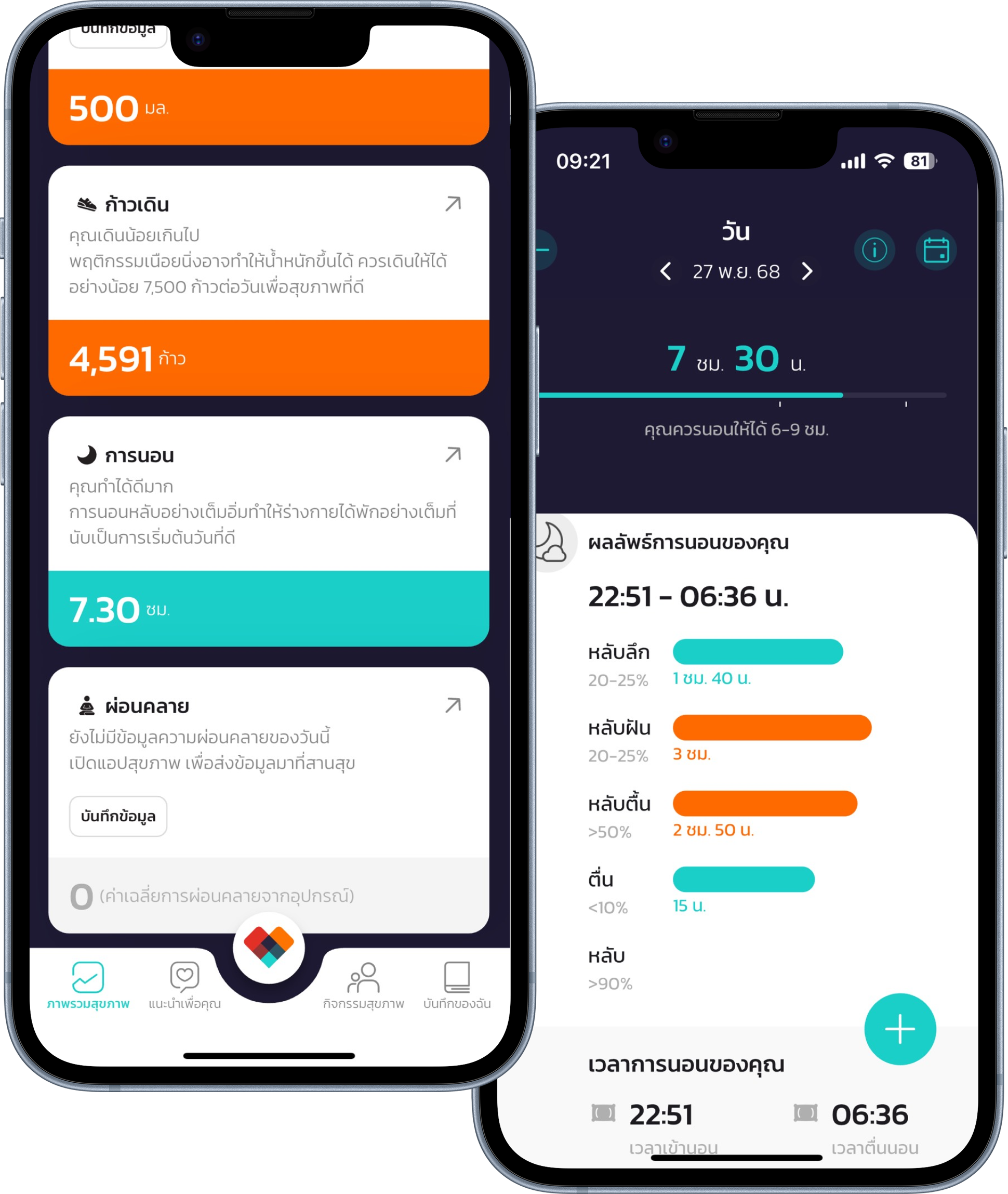 • ติดตามชั่วโมงการนอนของคุณในคืนที่ผ่านมา