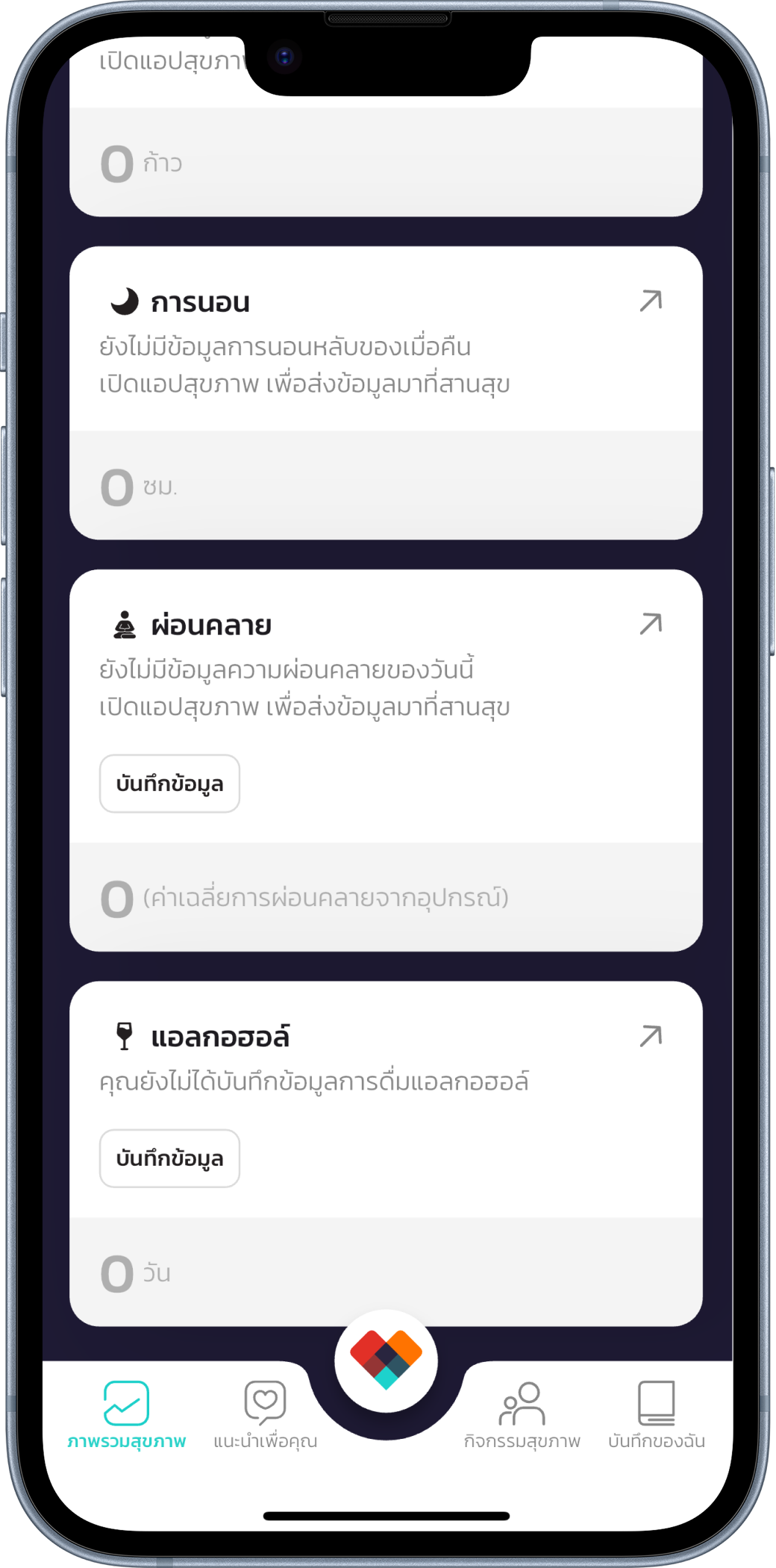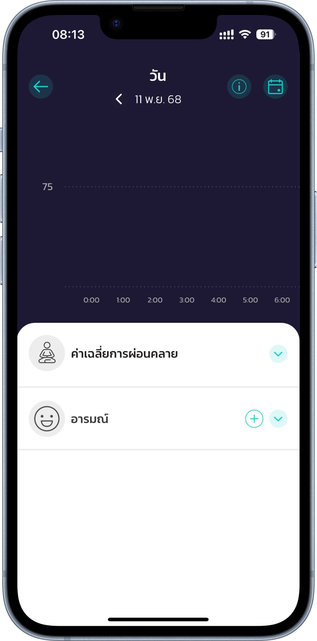 แต่เเม้ว่าคุณจะไม่มีข้อมูลการผ่อนคลาย คุณยังสามารถติดตามอารมณ์ของตัวเองได้ผ่านหัวข้อ ‘อารมณ์’