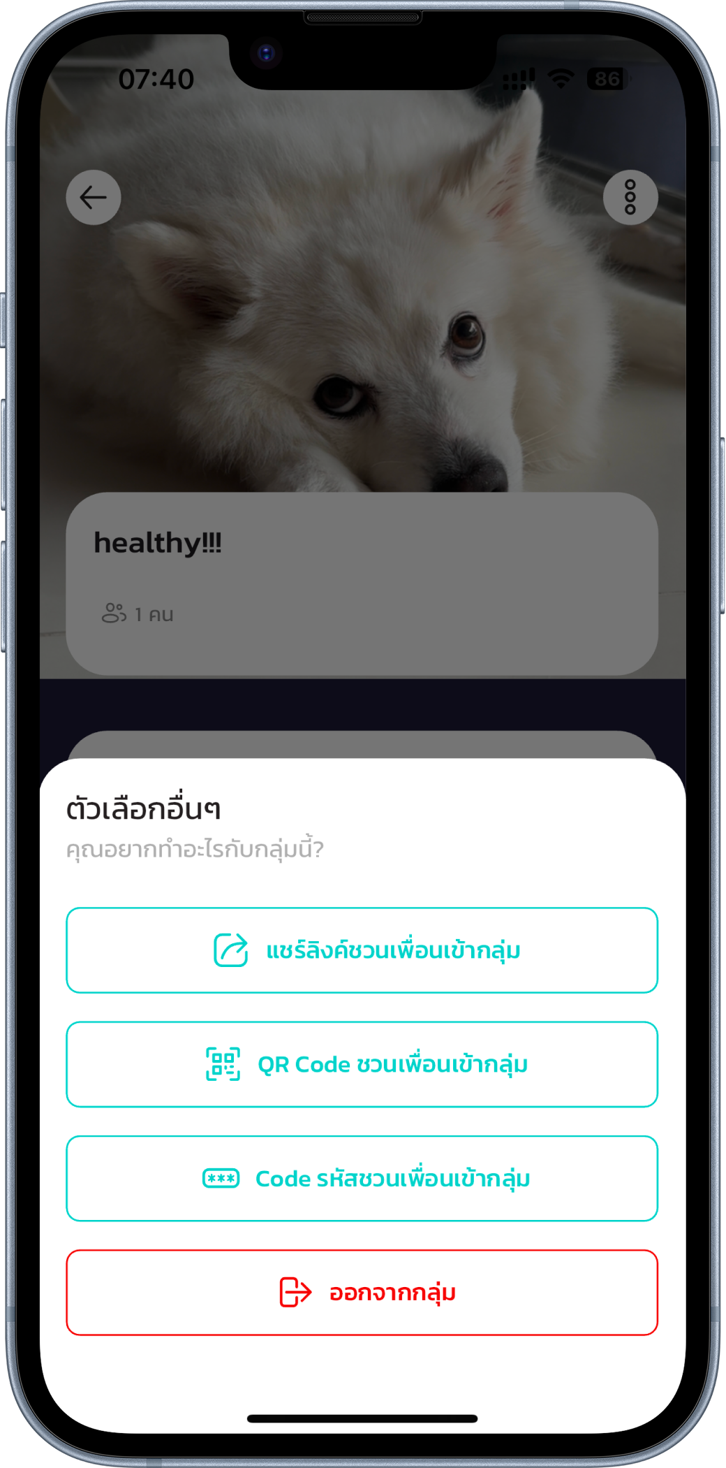 คุณสามารถสร้างหรือเข้าร่วมกลุ่มกับเพื่อนในแอป เพื่อชวนกันดูแลสุขภาพ
